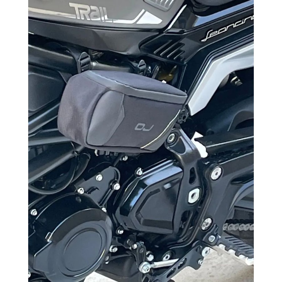 It is a mini storage solution for handlebars, engine guards or frames.
