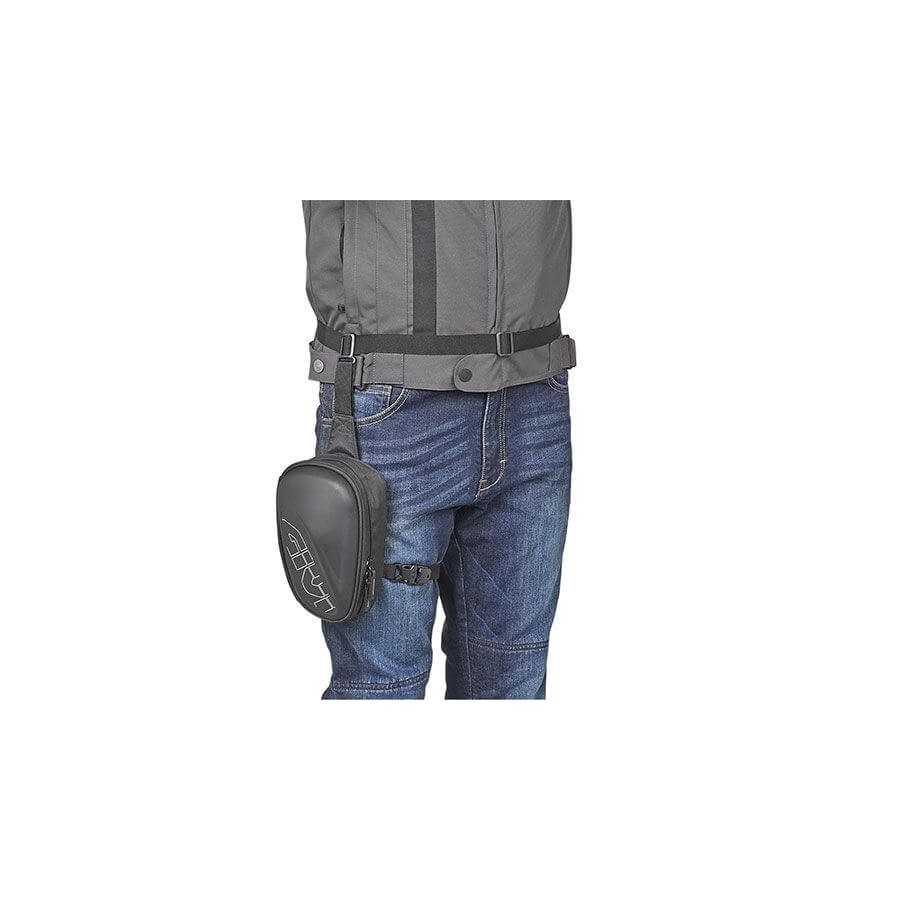 Thermoformed leg Bag, 3 litres. Amenities: • Adjustable waist Strap (removable) • Possibility to hook the bag directly to the belt or to the pants • Elastic and adjustable Straps on the leg • Internal Fins to ensure the stability of the contents • Reflective Prints for increased visibility • Waterproof Cover • Three internal pockets (one on the net, one with zip closure and one smartphone door)