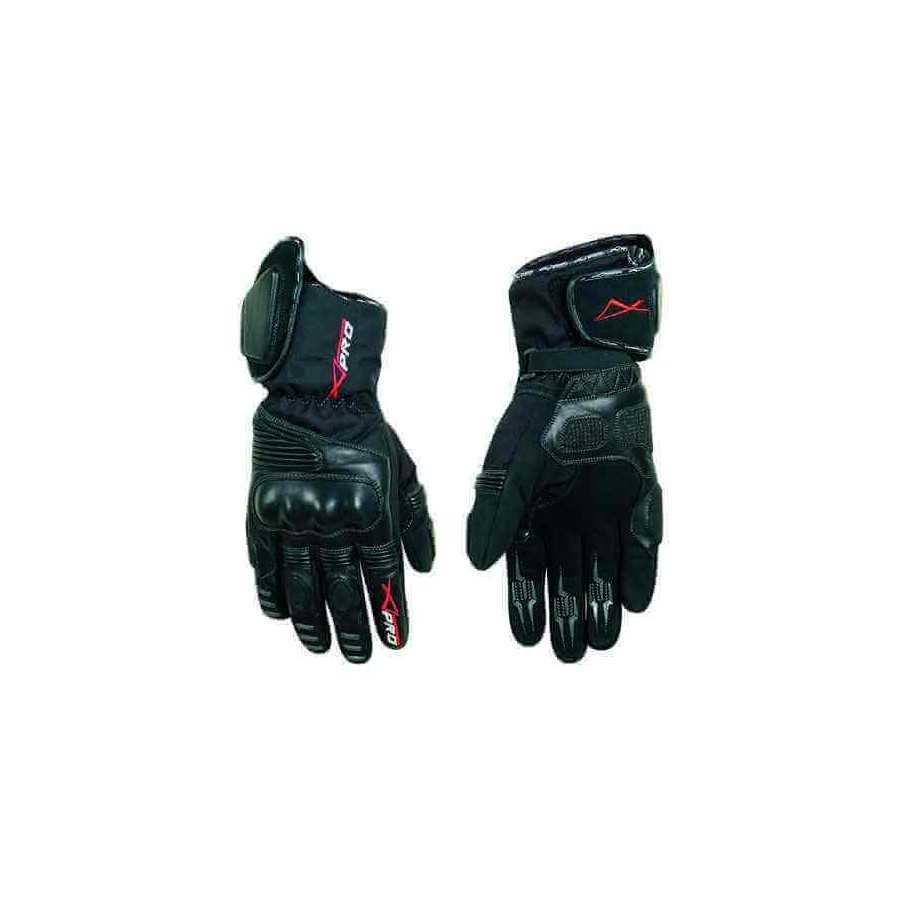 100% waterproof fabric (AcquaKill) and thermal lining (HotLife) PROTECTIONS: palm with leather reinforcement and thermo-plastic knuckle protectors INTERIOR: polyester SIZES: from XS to 3XL COLOR: black TECHNICAL INDICATIONS: Glove in fabric, with 100% rainproof membrane and thermal lining (HotLife), elasticated cuff, velcro strap for adjustment, palm padded with anti-slip, thermo plastic knuckle protectors, high resistance fabric, very simple but well studied design. Ideal for winter.