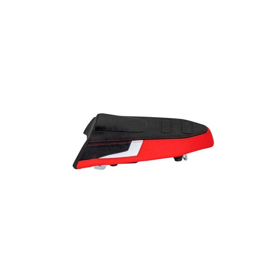 Plus haute que la selle d'origine, elle permet une position de conduite plus naturelle, détendue et stable, même sur les longs trajets. Son design 100 % italien s'intègre parfaitement aux lignes de la moto et lui confère un style dynamique et épuré, idéal pour la route comme pour le tout-terrain.