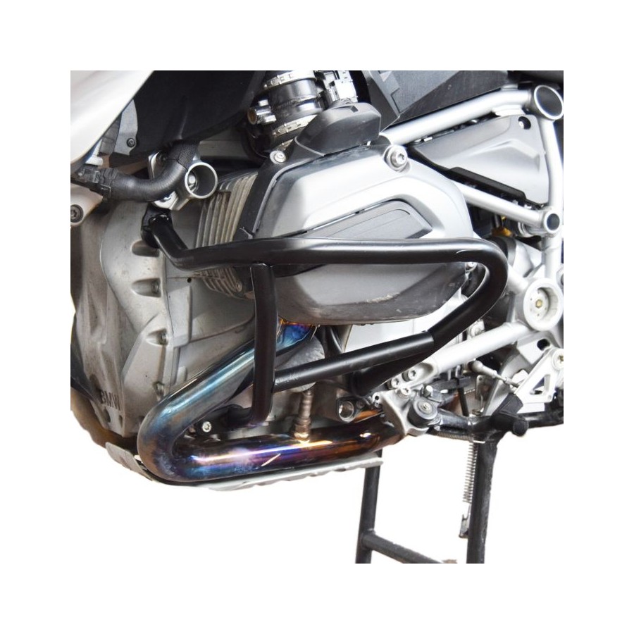 Ce produit représente l'évolution des barres de protection grâce à un système d'absorption des chocs révolutionnaire. Ces tubes sont composés de différents matériaux afin de réduire d'environ 80 % l'impact sur la moto en cas de chute, par rapport aux barres de protection standard à plaques soudées. Ce système est constitué de trois matériaux distincts : un composant en magnésium-aluminium inséré dans le tube ; un capuchon extérieur en technopolymère qui absorbe une grande partie de l'impact ; et enfin, une plaque de connexion en fer qui absorbe le reste de l'impact. Les plaques de connexion cadre/tube sont dotées d'une rainure d'aération faisant office d'amortisseur.