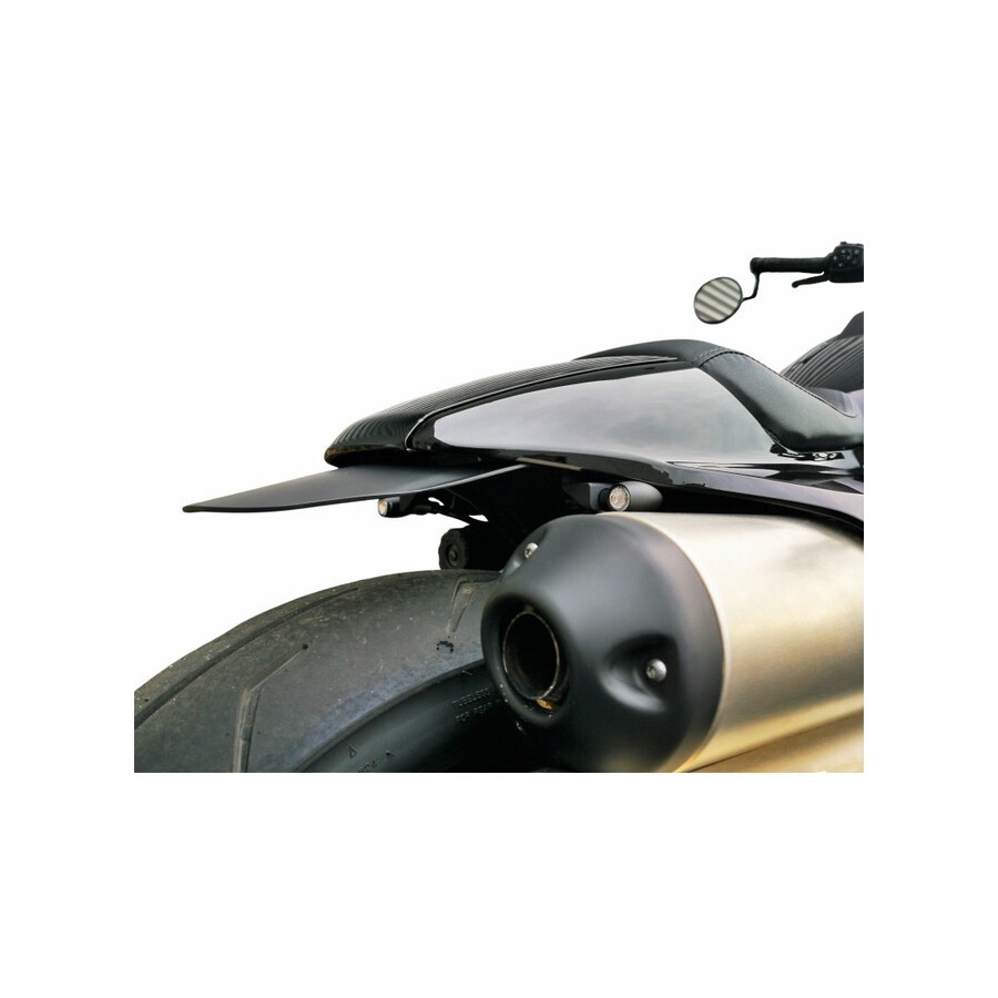 Le garde-boue est renforcé pour qu'il puisse se fixer sous la boucle arrière de la moto, il se monte aussi avec ou sans la selle