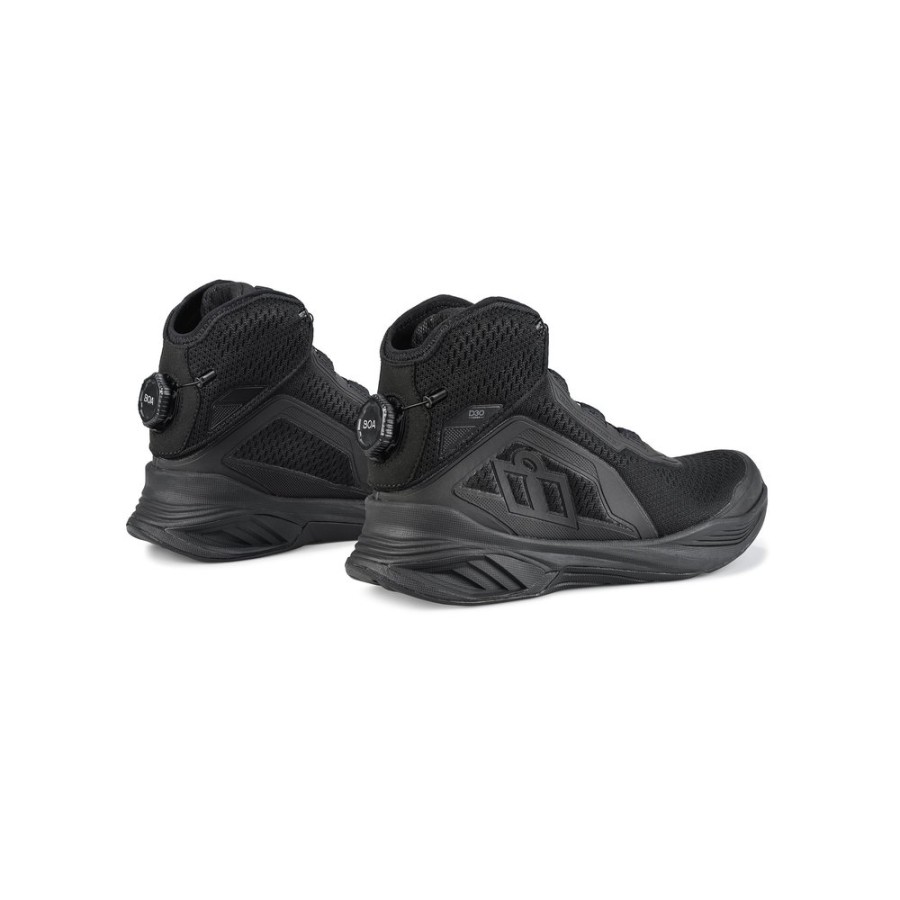 La botte Hooligan AF CE™ ne plaisante pas : née dans les rues, elle est faite pour y résister. Grâce à son mélange robuste de cuir TechTuff et de mesh technique, elle affronte le béton, le chrome et le chaos sans broncher. Le système de laçage BOA® permet un ajustement précis et rapide, car on n'a pas le temps de lacer ses chaussures quand la ville est déjà en mouvement. À l'intérieur, les inserts D3O® au niveau des chevilles et les semelles intérieures en EVA à haut rebond assurent confort et protection, tandis que la structure en mesh favorise une ventilation optimale même par forte chaleur. Sous le pied, la semelle extérieure antidérapante offre une adhérence maximale, par tous les temps, en toutes circonstances. Certifiée ultra-résistante selon la norme EN 13634:2017, la Hooligan™ est performante à 100 %, sans fioritures. Mi-basket, mi-tactique, elle est prête à tout.