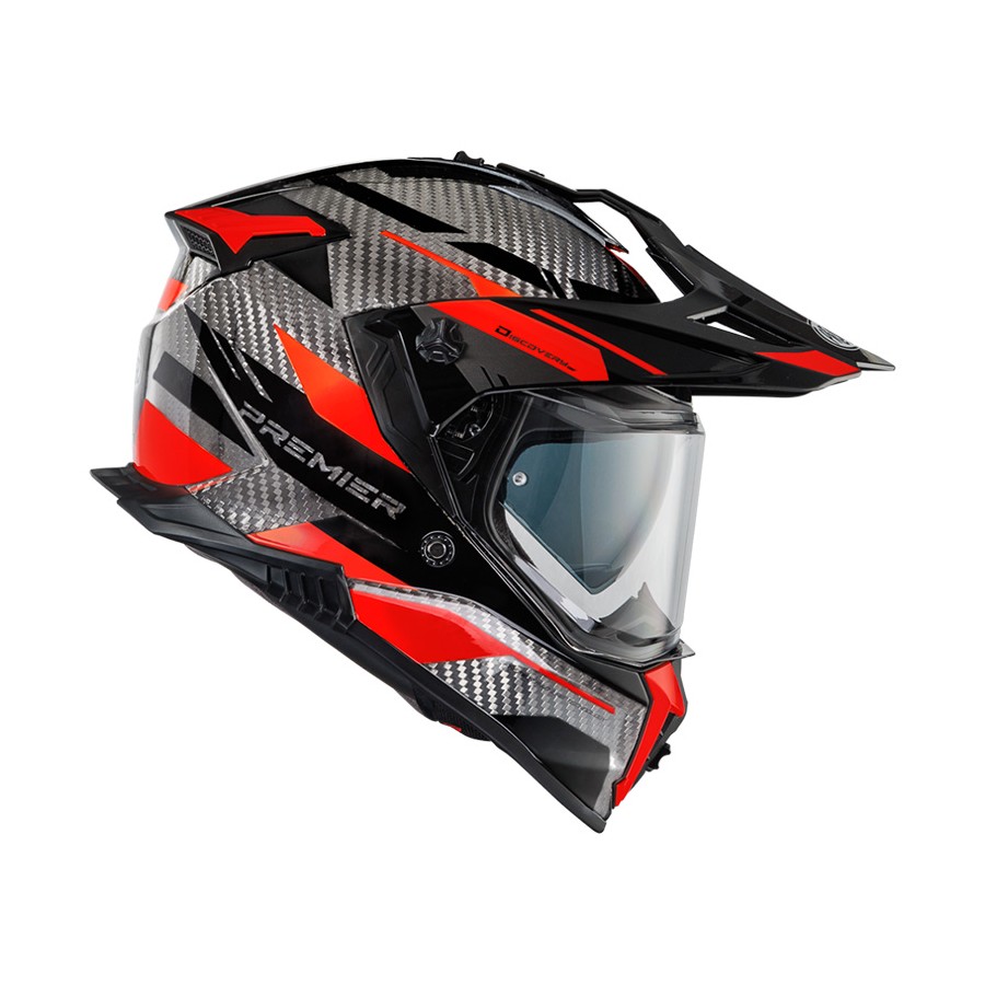 La visière en polycarbonate résistant aux rayures est également équipée d'une visière intérieure sombre pour une conduite optimale dans toutes les conditions météorologiques et de luminosité, cette visière est actionnée par un levier sur le côté gauche du casque.
