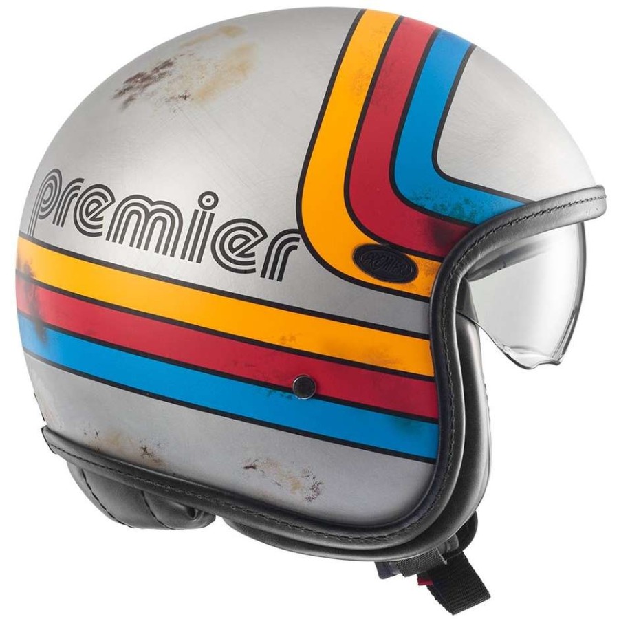 Premier a toujours été attentif aux besoins de ses clients et pour cette raison, il a inclus le modèle Vintage dans sa collection, un jet à la forme particulièrement captivante qui répond aux demandes les plus récentes de style et de mode appliquées aux casques pour moto. Enveloppant, compact et avec de nombreux beaux graphismes, le Vintage est adapté à un usage citadin, pour ceux qui veulent un casque beau et à la mode, mais aussi pour ceux qui ne veulent pas renoncer à la sécurité qui est une caractéristique essentielle en ville, où se produisent 67% des accidents de la route impliquant des motocyclistes. Dans la collection 2014, Premier a inclus de nouveaux graphismes captivants, tandis que les versions Vintage sont au nombre de deux : Vintage et Vintage Classic. Dans la version Vintage, le modèle Carbon se distingue, qui a une coque externe entièrement en carbone visible, et le modèle Carbon BM et KEW, où se distingue la coque en fibre de carbone et aramide, agrémentée de graphismes recouverts de vernis transparent mat. Dans toutes les autres versions, la coque du Vintage est en fibres DCA tricomposite (fibres dyneema, carbone et aramide). La même composition que Premier adopte sur tous ses casques en fibre et qui découle de la grande expérience que l'entreprise italienne a acquise au fil des ans dans l'étude et l'utilisation des fibres composites. La version Classic, quant à elle, dispose de trois boutons sur la partie supérieure de la coque sur lesquels on peut fixer le classique pare-soleil en forme de clou (fourni avec le casque) ou un long pare-soleil (vendu séparément en option). Dans tous les modèles, la coque intérieure est en eps, moulée avec différentes densités, pour une meilleure absorption de l'énergie générée par un impact. Vintage a une visière rétractable sombre logée entre les deux coques interne et externe qui peut être facilement actionnée. Les intérieurs sont en tissu anti-allergique avec traitement Sanitized et sont entièrement amovibles et lavables à l'exception du modèle Classic qui a une calotte fixe et des coussinets de joues amovibles, tandis que les bords sont recouverts de simili cuir noir. La sangle a une fermeture rapide pratique avec réglage micrométrique. Comme tous les casques Premier, aussi le Vintage ? homologué selon la législation ECE 22-06 en vigueur. Coques N : 1. Matériaux : fibres tricomposites et résine. Poids : 990 gr +- 50 gr. Intérieur amovible.