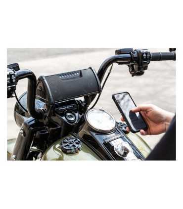 10" (25,4 cm) de long x 5" (12,7 cm) de large x 4" (10,2 cm) de haut. Poids 4,3 lb (1950 grammes). 2x27W RMS, 2x35W dynamique. Peut être utilisé avec ou sans fil sur le vélo. Hors vélo, la batterie au lithium fournira environ 6 heures de musique à 50 % de volume. Conçu pour être extrêmement résistant et résistant à l'environnement avec son indice de protection IP65. Cela inclut l'eau, la boue, la saleté, le sable, la neige ou tout ce que vous pourriez rencontrer Son cristallin et profondeur de gamme moyenne et basse immersive grâce à un DSP (processeur de signal numérique) intégré qui offre des performances optimales à n'importe quel volume et dans n'importe quel environnement. L'ampli stéréo dynamique interne de 35 W alimente deux 2" x Des woofers en néodyme de 3,2" et quatre tweeters à dôme teteron de 1", tandis que les radiateurs passifs intégrés produisent des médiums et des lignes de basse percutants qui ne sont généralement pas atteints dans une barre de son compacte. Filaire ET sans fil ! Le WanderBar ™ est parfait pour une utilisation sur les motos, côte à côte, VTT, pratiquement n'importe quel véhicule récréatif ou tout simplement seul. Remarque : Voir 925776 pour le kit de montage en option qui permet l'installation sur la plupart des 7/8" (22 mm) / 1" (25,4 mm) / 1-1/4" (31,8 mm) et 1-1/2" (38,1 mm) barres.