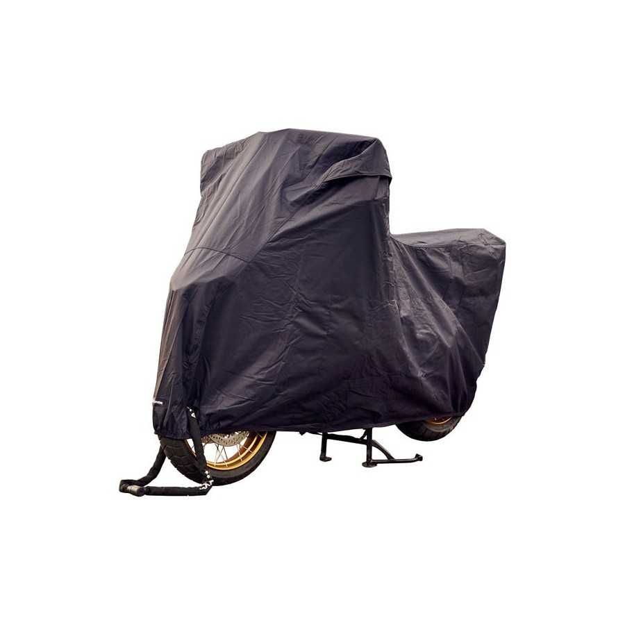 Identique au Delta mais l'Alfa offre en plus une doublure intérieure douce et des plans spéciaux de matériau résistant à la chaleur à 300 ° C sur les côtés gauche et droit. Housse de moto d'extérieur DeLuxe pour les conditions extérieures les plus difficiles. • Protection maximale contre la pluie, la poussière, le gel et les UV. • Bouches d'aération pour éviter la condensation. • Ouvertures de verrouillage de chaîne à l'avant et à l'arrière. • La doublure en coton doux protège des rayures. • Revêtement résistant à la chaleur (jusqu'à 300 °C) aux positions d'échappement. • Ourlet élastique pour une clôture parfaite. • La sangle réglable avec fermeture à bouton-pression maintient le couvercle en place. • Coutures doubles pour une longue durée de vie. • 100% étanche à l'eau et à la poussière. • Matière : polyester 300D. • Livré dans un sac de rangement pratique. Remarque : déterminez la bonne taille de housse en mesurant la longueur, la largeur et la hauteur de votre moto. La taille correcte de la housse a une longueur d'environ 5 à 10 cm plus longue que la longueur de votre moto. Pour une bonne ventilation, nous recommandons d'avoir la couverture à environ 10-20 cm du sol. De cette façon, l'air peut entrer dans le couvercle par le bas et sortir du couvercle par les bouches d'aération sur le dessus. Si les dimensions se situent entre deux tailles, choisissez la plus grande des deux. Parce que le bord est élastiqué, la housse s'adaptera toujours bien.