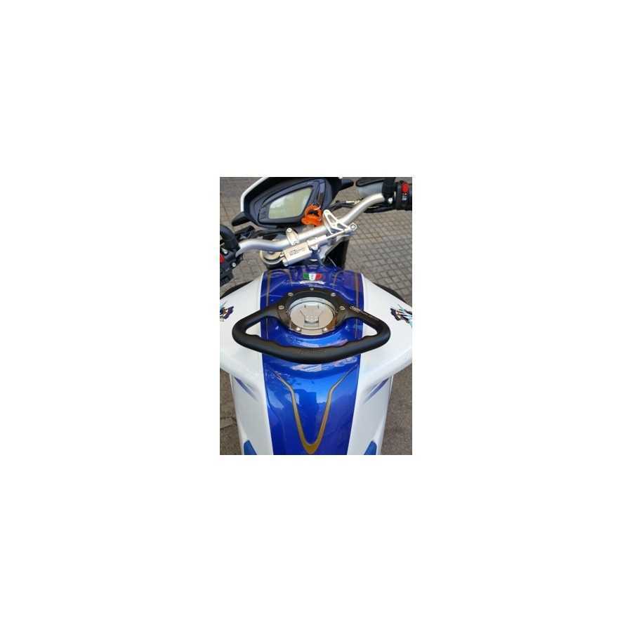 La poignée A-SIDER est fixée au bouchon du dépôt d’essence et par son design tout en arrondis évite toute blesure possible au pilote et à son passager.