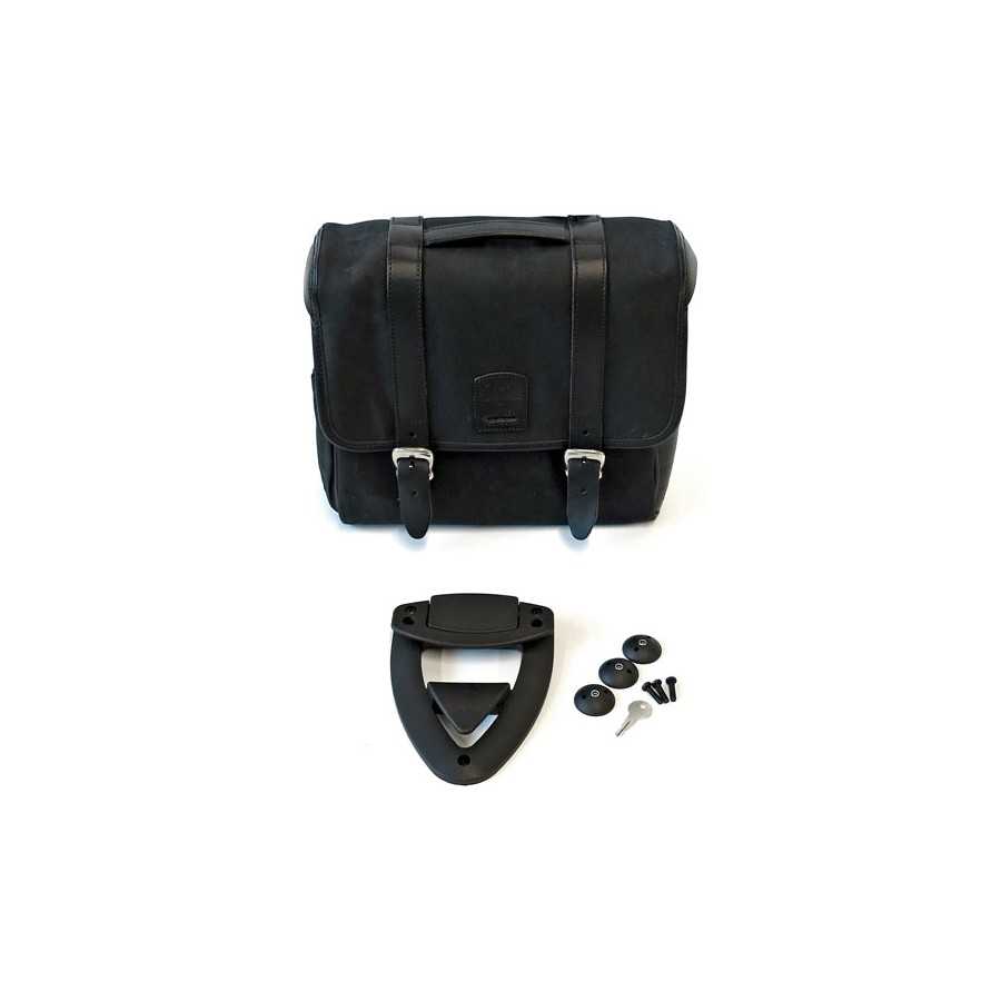 Classique - Un anneau en acier dépasse du rabat avant pour un verrouillage sécurisé au moyen d'un cadenas - Env. dimensions : 34 cm de large x 28 cm de haut x 12 cm de profondeur - Env. capacité : 11,5 litres Sacoche universelle simple face « Heritage » offrant une facilité d'installation par clic. Un support de montage triangulaire, fourni, est monté sur le côté arrière du sac. De cette façon, le sac se monte sur un support de sacoche LongRide universel ou spécifique au modèle, disponible séparément. Les sacs sont fabriqués à partir de coton ciré et finis avec des panneaux en cuir Ranger, des lanières en cuir et des plaques de renfort internes pour aider à maintenir leur forme. L'intérieur est équipé d'une doublure intérieure en polyester imperméable. Une poche latérale supplémentaire est présente pour les petites pièces rapidement accessibles. Les dimensions et capacités sont approximatives et à titre de référence seulement. Remarque : Conçu pour être utilisé avec un support de sacoche LongRide Click & Lock universel, spécifique au modèle, disponible séparément.