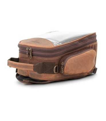 Matériau en toile solide, fini avec du véritable cuir de ranger vieilli. Le sac peut être rallongé pour augmenter son volume, uniquement lorsque cela est nécessaire pour éviter un sac « volumineux » inutile. L'écran tactile de votre appareil à travers la fenêtre en PVC "transparente". Un total de 8 aimants puissants maintiendront votre sac sans glissement sur le réservoir de carburant. La sacoche de réservoir est étanche, grâce à la housse de pluie intégrée. Pour une utilisation hors vélo, vous pouvez utiliser la poignée de transport intégrée. Pour plus de confort, une bandoulière en option est disponible en 970952 noir ou 970953 marron. Dimensions : 31 x 17 x 22 cm, extensible à 31 x 25 x 22 cm. Capacité : 9 litres, extensible à 14,5 litres.