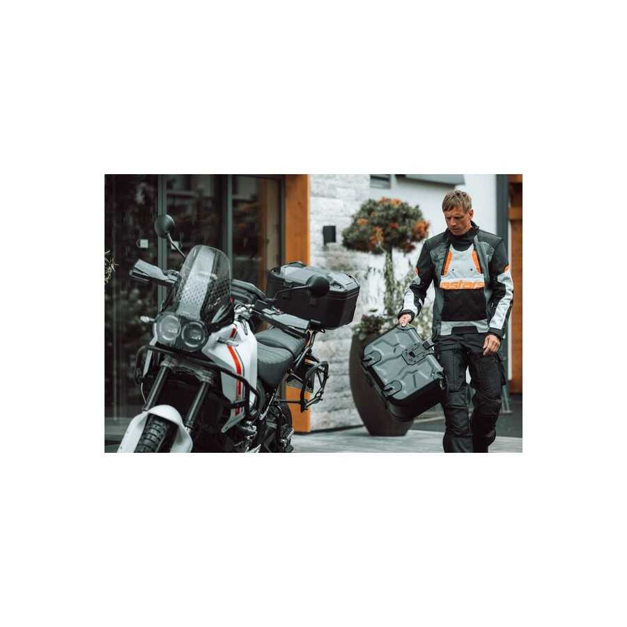 Robuste, étanche, polyvalente : la valise rigide SW-MOTECH DUSC a été développée pour tous types de balades à moto. Qu'il s'agisse d'un voyage sportif, hors route ou d'un grand voyage, le DUSC au tout nouveau design convainc par sa manipulation facile et son transport fiable des bagages. Son style et son ADN aventureux s'adaptent aussi bien aux motos de tourisme qu'aux enduros de tourisme.