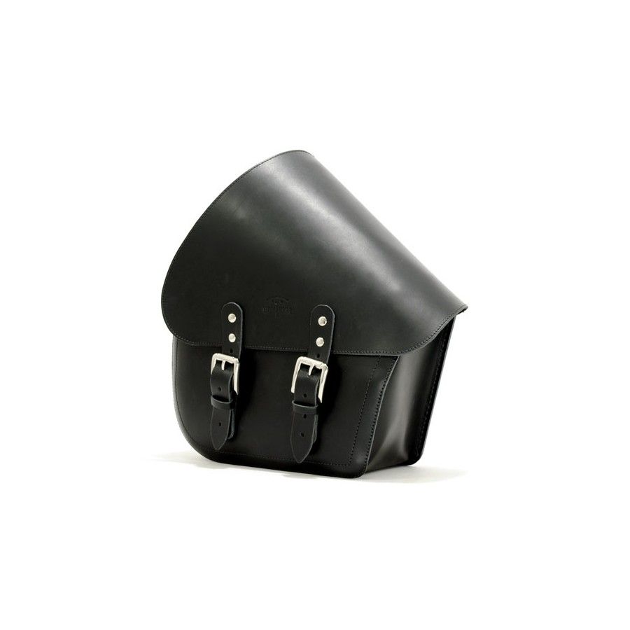 Petit. Se monte sur le côté gauche du bras oscillant Softail. Complet avec des sangles en cuir sur la face arrière pour une installation facile sur les tubes du bras oscillant. - Dimensions approximatives : 27 cm de haut x 37 cm de long x 13,5 cm de profondeur - Capacité : 7 litres