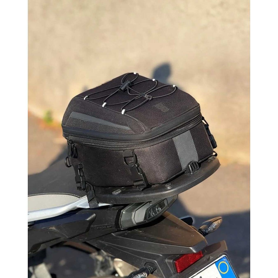 Pratique et fonctionnelle, la sacoche de selle moto en tissu REAR PLUS est l'accessoire idéal pour ceux qui recherchent une solution spacieuse et sûre pour leurs déplacements. Grâce à sa conception extensible, elle offre une capacité de chargement généreuse qui s'adapte à vos besoins, sans compromettre la stabilité en conduite. Le système de fixation par sangles assure une installation sécurisée sur la selle, tandis que les inserts réfléchissants améliorent la visibilité et la sécurité par faible luminosité. La base antidérapante maintient la sacoche bien en place, même sur les routes les plus accidentées. Les sangles élastiques supérieures peuvent servir de filet de chargement, et la housse intérieure protège la sacoche et son contenu des averses soudaines. Dimensions : 22 x 35 x 15/25 cm. Capacité : 11 L / 19 L.
