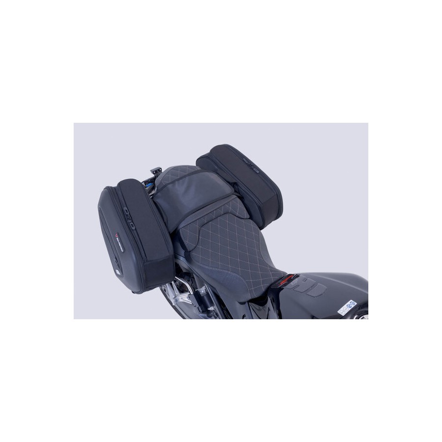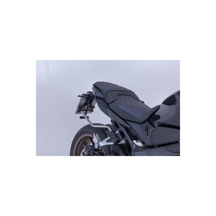 Développées spécifiquement pour les motos sportives, les sacoches latérales limitent les caractéristiques de conduite au minimum. Ceux qui voyagent sans bagages peuvent retirer les barres d'écartement d'un seul mouvement de la main et seuls les supports discrets restent sur la moto.