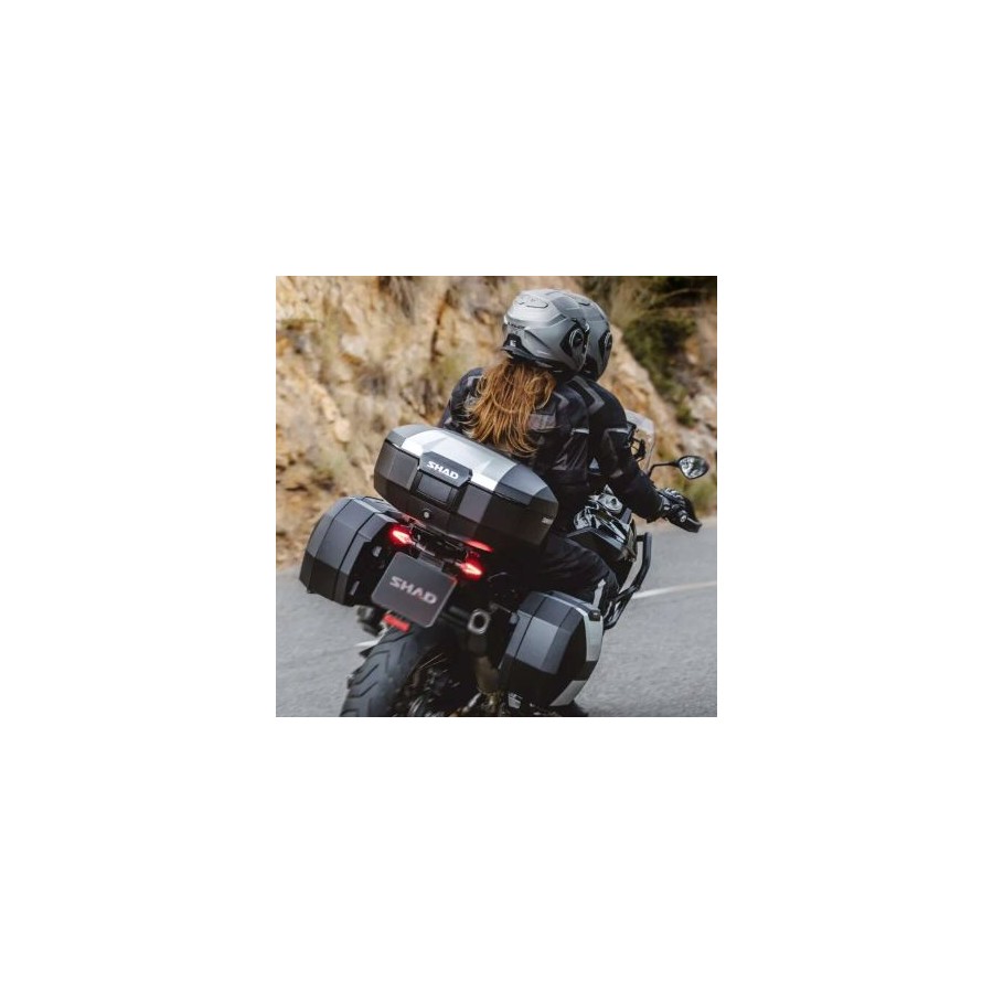 SHAD enrichit sa gamme de systèmes de rangement avec le nouveau top case SH51, conçu pour les motards recherchant une capacité de chargement et une fonctionnalité accrues pour les trajets de moyenne et longue distance. Ce nouveau top case s'intègre parfaitement aux valises latérales extensibles SH38X, formant un ensemble équilibré et polyvalent, idéal pour les longs voyages et offrant une capacité de chargement élevée.