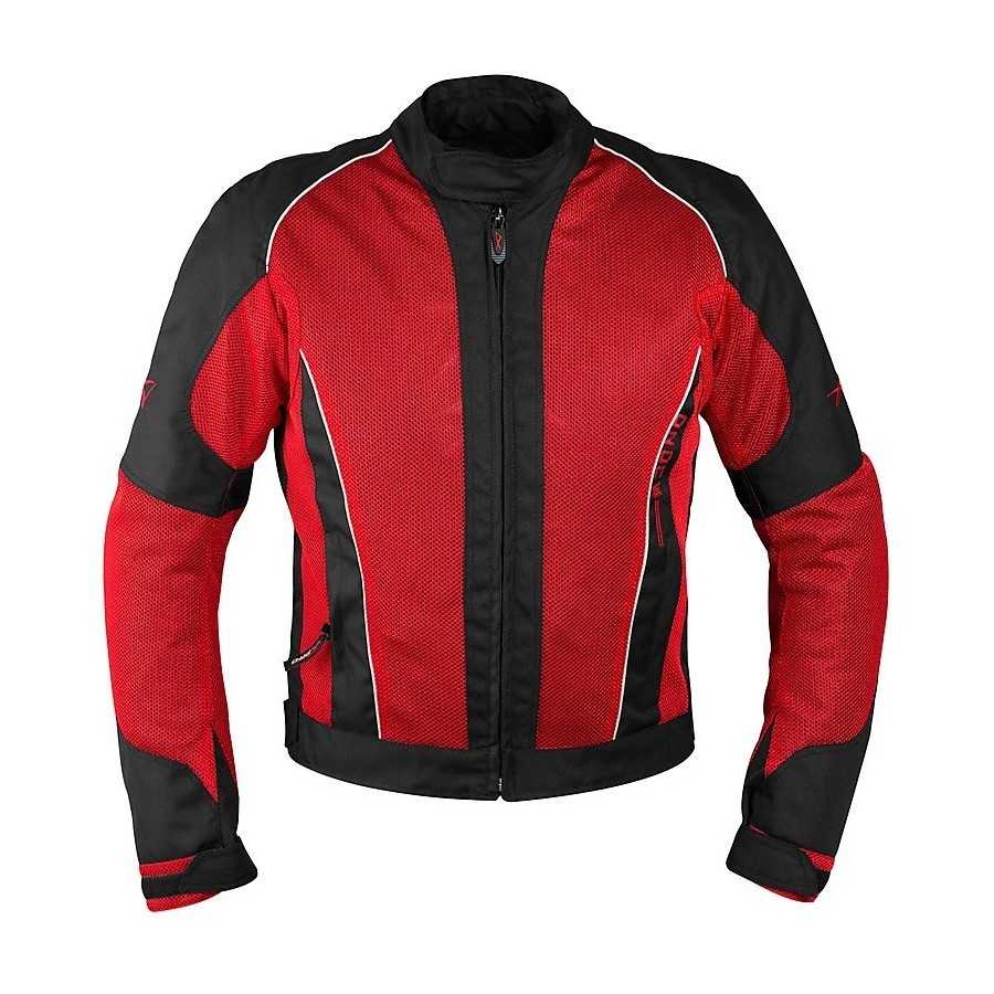 Veste de sport en tissu perforé haute résistance, protections homologuées amovibles, renfort arrière amovible, membrane imperméable amovible, poches internes pour documents, ceinture de hanche pour le réglage du volume de la taille, inserts réfléchissants. Tailles disponibles du XS au 3XL.