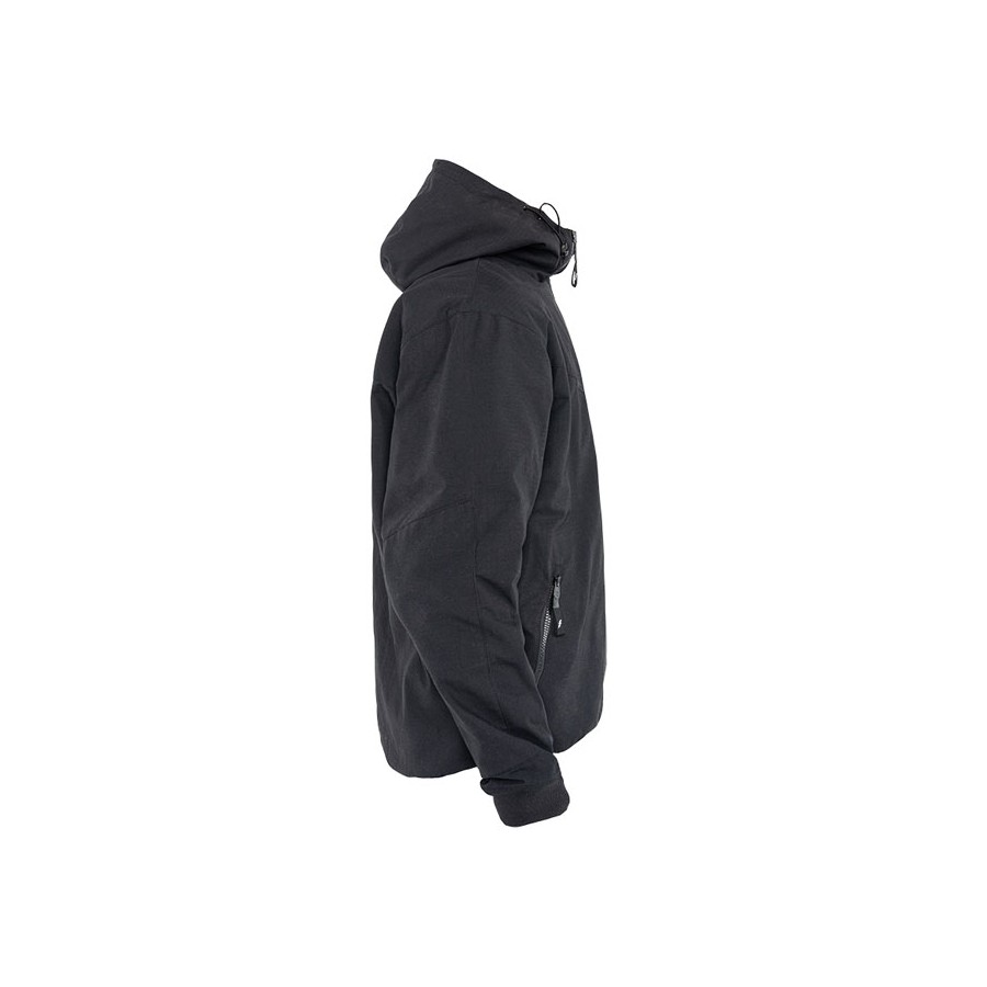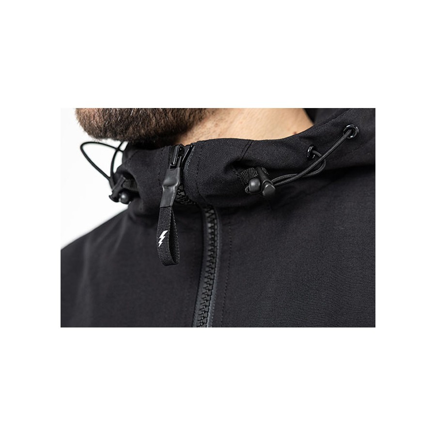Fermeture boutonnée en haut de la capuche pour éviter les battements au vent
