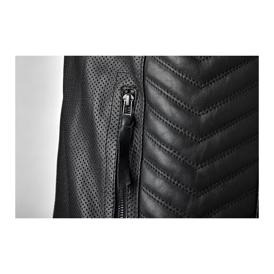 Nous disposons désormais du modèle Roadster dans une version « Air », adaptée aux conditions climatiques et aux fortes chaleurs. Pour utiliser le cuir entièrement perforé, nous avons ajouté une doublure en maille légère pour garantir la circulation de l'air autour du corps. Cela permet non seulement de réduire le poids de la veste, mais aussi d'apporter un niveau de confort incroyable et un look classique.