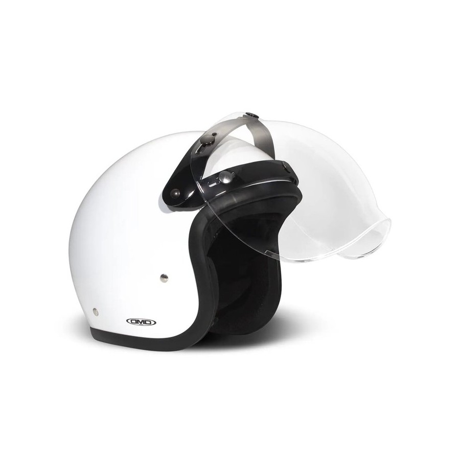 La visière bulle relevable est conçue pour les casques de moto DMD Jet et se fixe grâce à des boutons situés sur la coque.