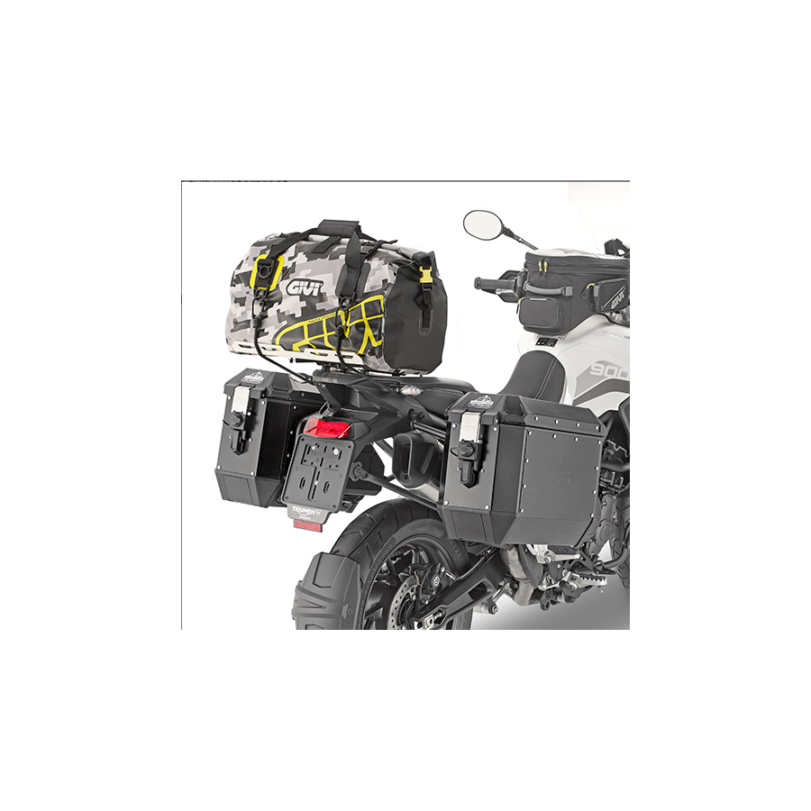 Borsone impermeabile da sella 40 lt, grafica camouflage grigio e giallo.