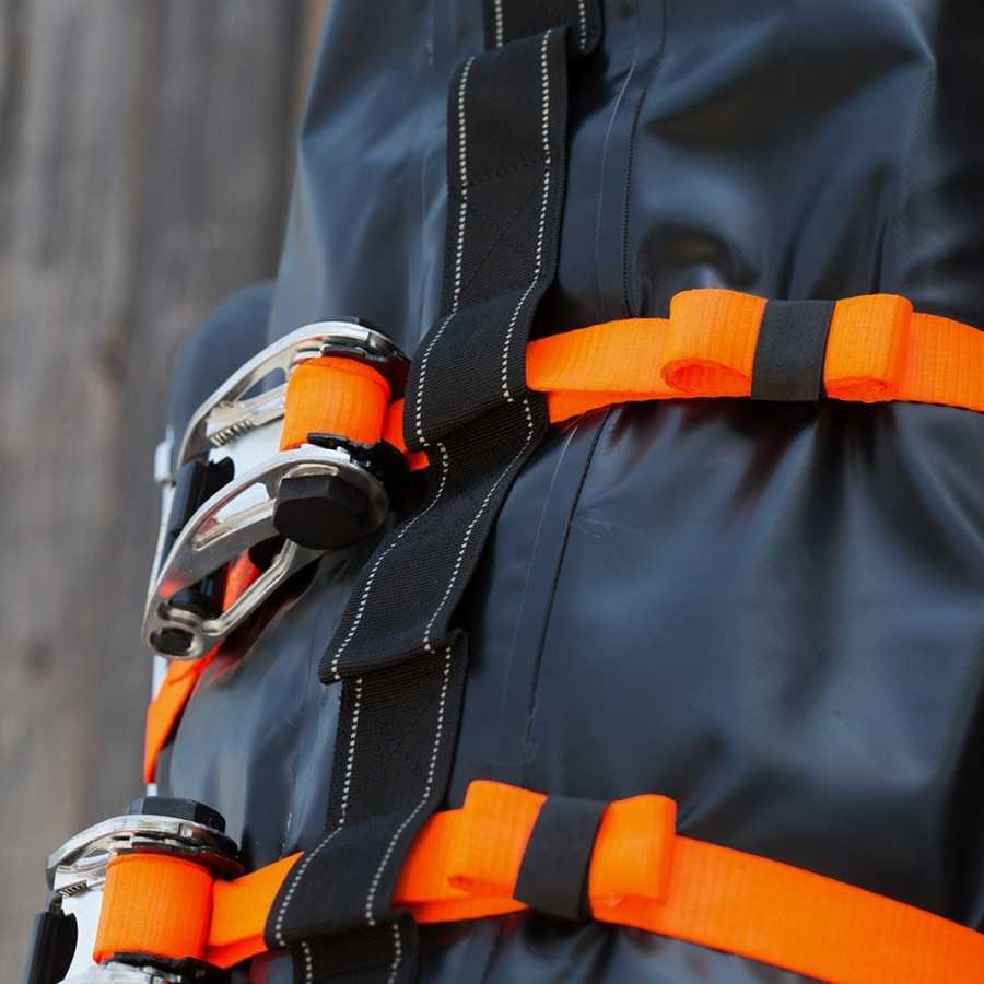 La chiusura roll-top con striscia in velcro e fibbie a sgancio rapido in nylon rinforzato mantiene il contenuto ben sigillato