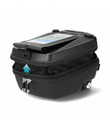 Borsa da serbatoio Click System E09CL Pro, il suo sistema di espandibilità permette di passare da 5 litri a un totale di 8 litri di capacità. Sistema con chiusura a chiave. Progettato a Barcellona.