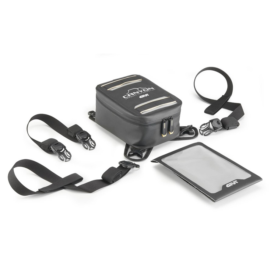 La borsa si fissa al serbatoio delle moto tramite 4 comode cinghie a clip cam buckle che mantengono la tensione e garantiscono la possibilità di agganciare e sganciare la borsa rapidamente, durante i momenti di sosta.