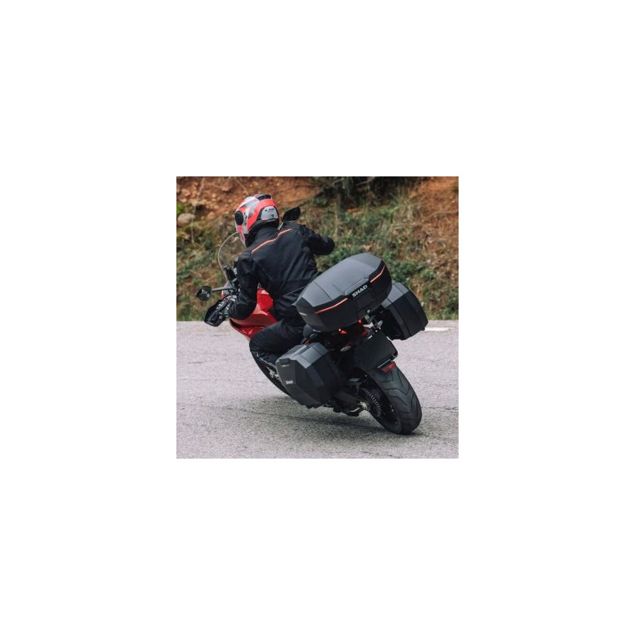 Questo bauletto, ideale per percorsi “adventure touring” su strade e sentieri semplici, nasce per allinearsi con le valigie laterali SH38X, ma è destinato a un mercato motociclistico di minore cilindrata rispetto ai bauletti SH59X e SH58X.