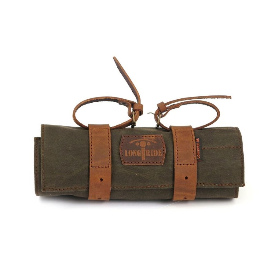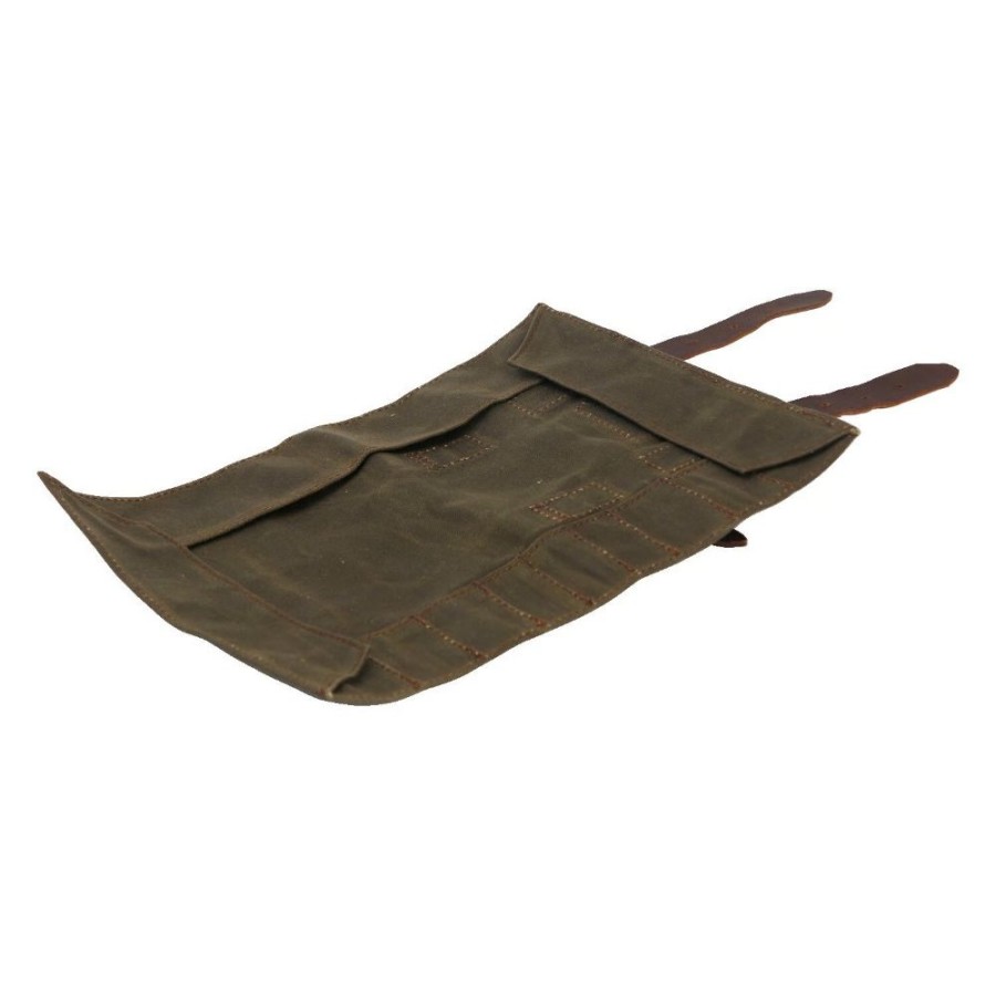 Marrone. Realizzato in cotone cerato e cinturini in pelle ranger. Si apre e offre scomparti precuciti per attrezzi e altre necessità. Si installa con cinturini in pelle inclusi. ca. dimensioni aperto: 35 cm x 25 cm. 986018