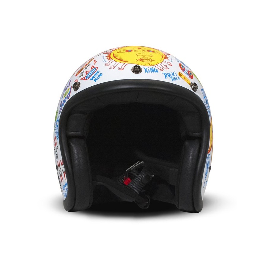 Il casco Retro è un remake del famoso e iconico casco degli anni '70. E' il più piccolo omologato della sua categoria. La calotta è realizzata in fibra di vetro e ha un elevato comfort grazie al suo favoloso rivestimento interno. L'interesse principale della società è stato quello di cambiare il casco tradizionale con una versione retrò in modo da renderlo un accessorio alla moda con un design originale. La collezione è disponibile con più di 30 grafiche; ogni modello ha la propria personalità e tutti hanno dei disegni fantastici. DETTAGLI TECNICI: - Calotta in fibra di vetro - Interno removibile e lavabile - Due differenti calotte per un massimo comfort e compattezza - Bottoni integrati alla calotta per visiere - Cinturino con chiusura a doppia anello - Omologazione ECE 22.06 - DOT TAGLIE: - XS - 54 cm - S - 55 cm - M - 56/57 cm - L - 58 cm - XL - 59/60 cm