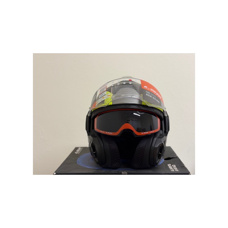 La rapidità di trasformazione del casco è un elemento molto importante, pertanto, una semplice pressione sulla serratura presente sotto la mentoniera e il gioco è fatto