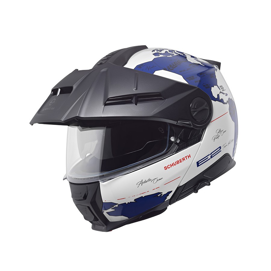 SCHUBERTH E2 rappresenta la seconda generazione di caschi adventure di SCHUBERTH ed il secondo casco della gamma dotato di doppia omologazione P/J e conforme alla nuova norma ECE 22.06. SCHUBERTH E2 è il mix perfetto tra il comfort della famosa serie "C" ed il look aggressivo di un casco offroad. Il nuovo E2 integra inoltre tutti gli ultimi standard SCHUBERTH in termini di sicurezza, aerodinamica e prestazioni aeroacustiche.