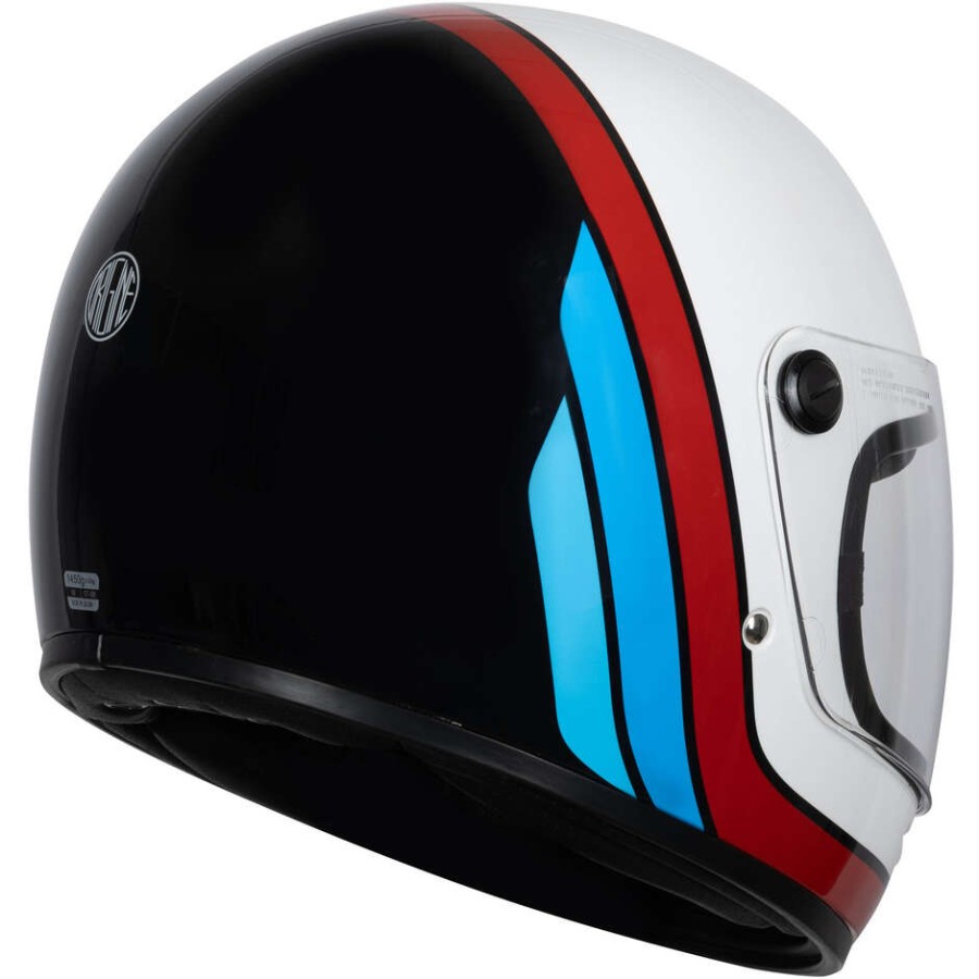 Casco integrale dal look vintage, realizzato in fibra di vetro, dotato di ampia visiera chiara e interni removibili e lavabili e con pratica chiusura a doppia D