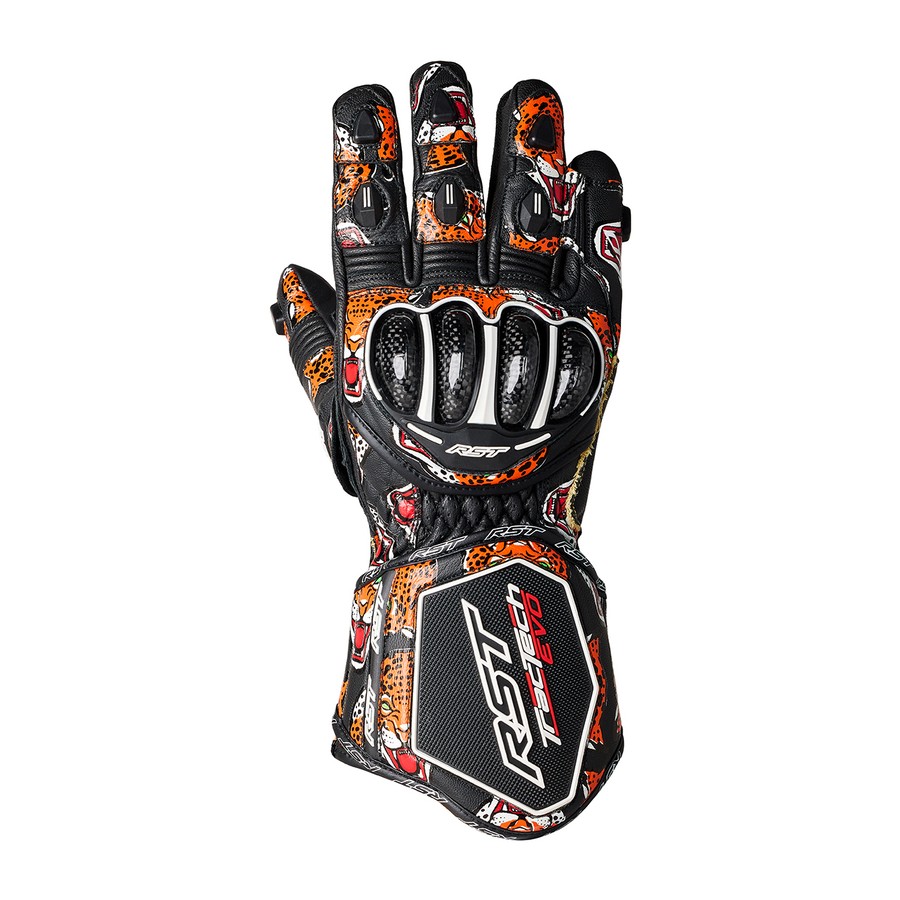 Realizzato con pelle bovina pieno fiore e pelle di canguro, il guanto è dotato di una protezione nocche in carbonio CE livello 1 per la protezione dagli urti. La fibra DuPont™ Kevlar® sulle cuciture e sulla parte inferiore del palmo, insieme alla pelle di canguro a doppio strato e un cursore del palmo RST proteggono il palmo in caso di scivolata ad alta velocità, mentre il doppio polso e la chiusura del polsino offrono una vestibilità sicura. La fodera in DuPont™ Kevlar® su tutto il resto del guanto previene lo strappo e le dita congiunte elastiche impediscono il "rollio delle dita" senza compromettere la portata o la flessibilità quando si cambia marcia.