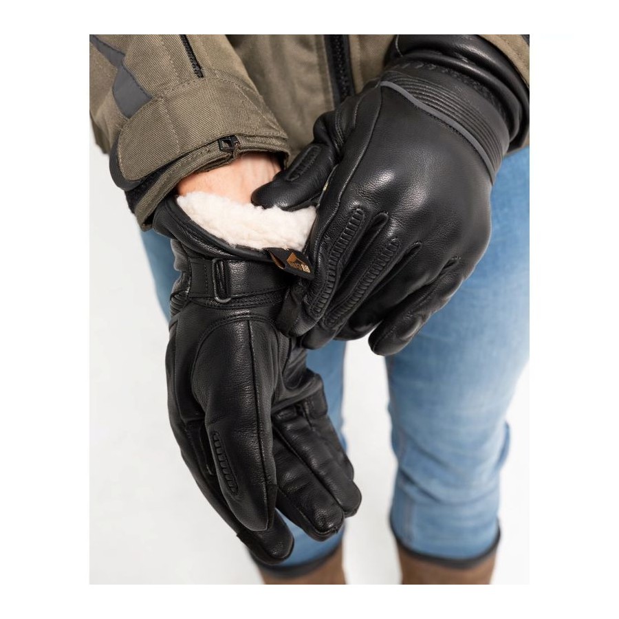 I guanti By City Lyon sono realizzati in pelle di alta qualità con rinforzi in aramide sul palmo per una maggiore resistenza all'abrasione. Questi guanti sono dotati di indici e pollici compatibili con i touchscreen, consentendo di utilizzare i dispositivi senza toglierli. La chiusura in velcro sul polso garantisce una vestibilità sicura e regolabile, mentre i pannelli elasticizzati su dita e dorso della mano offrono un comfort eccezionale. Rivestiti in pelliccia sintetica per un migliore isolamento termico, questi guanti includono anche elementi riflettenti per una maggiore visibilità. La membrana HIPORA offre protezione impermeabile e traspirante. Inoltre, sono dotati di un elegante portachiavi e sono certificati CE secondo la norma UNE EN:13594:2015 livello 1, inclusa la protezione delle nocche.