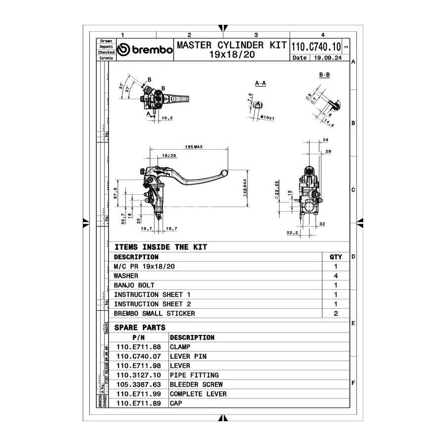 Brembo Pompa Freno Radiale 19 RCS Corsa Corta