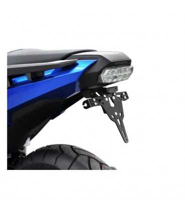 Portatarga verniciato a polvere nera che consente l'installazione senza apportare modifiche alle parti della carenatura. Inclusa luce targa a LED (omologata ECE)