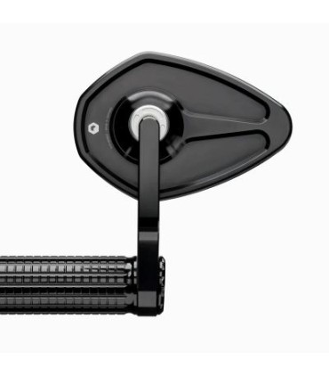 Lo specchietto può essere montato sopra o sotto il manubrio. Il braccio piccolo può essere orientato. Lo specchio è adatto per il lato destro e sinistro. Può essere montato direttamente sull'estremità del manubrio (22 mm e 1 pollice) o, se non è possibile spostare le manopole e i raccordi, utilizzando l'adattatore mo.view bar.