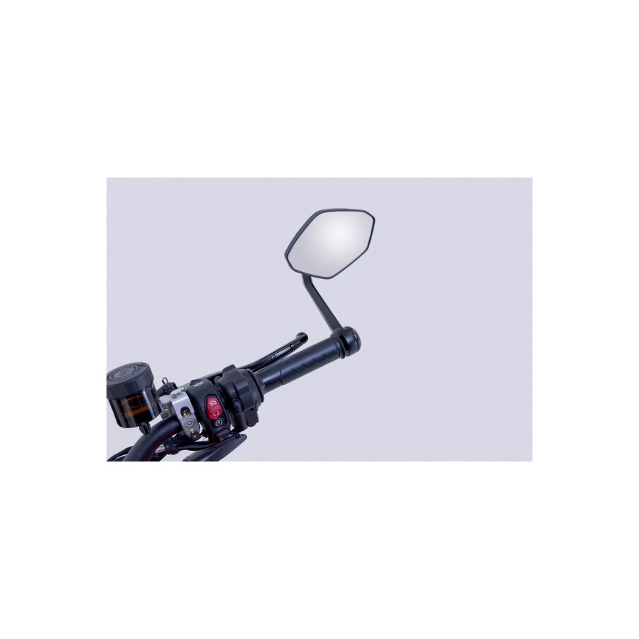 Il braccio avvolgente dal design aeordinamico e il suo look semplice e senza tempo si adattano perfettamente sia alle moderne naked sportive che alle scrambler o café racer dallo stile retrò. La testa a sfera dietro l'alloggiamento dello specchio consente una regolazione precisa e versatile del campo visivo, in modo da avere sempre una visione chiara di ciò che accade dietro di voi. L’insieme delle parti di montaggio incluse nei set, daranno alla vostra moto un perfetto design e garantiranno un aspetto armonioso e di alta qualità grazie a materiali accuratamente selezionate e sapientemente accostati tra loro.