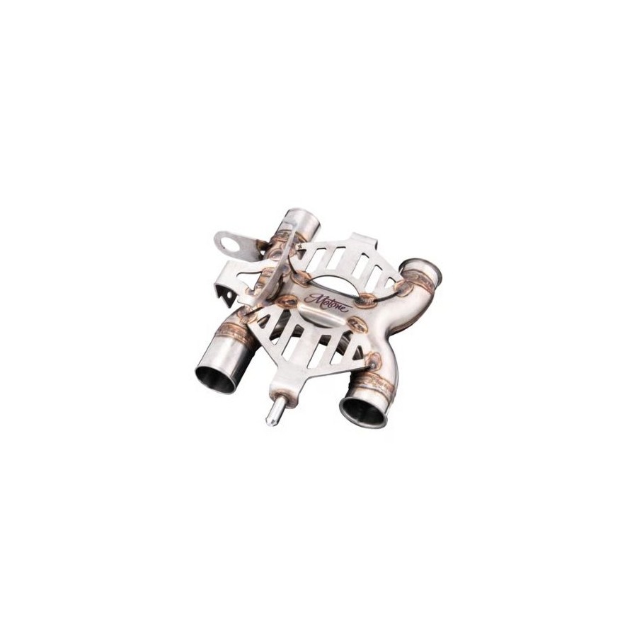 Include staffe per il rimontaggio dei coperchi originali. Questo tubo a X è progettato per sostituire il catalizzatore di serie alla base della moto.