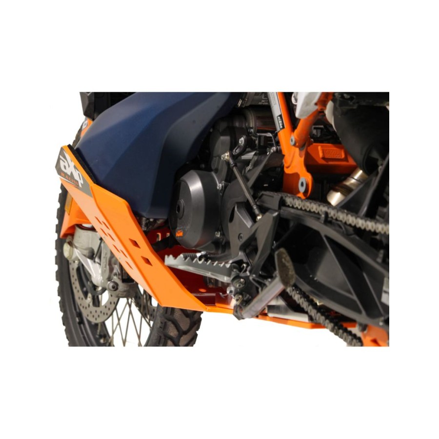 KTM 790 Adventure / 890 Adventure / R / L Paramotore TOURING – Peso: 3,9 Kg – Realizzato in plastica HDPE spessa 8 mm, questa nuova versione conserva i pregi del modello precedente e aggiunge alcuni miglioramenti, tra cui la compatibilità con il cavalletto centrale KTM. Progettato per un utilizzo leggero (su strada e piccoli sentieri), il paramotore AXP offre una migliore protezione su entrambi i lati del serbatoio, coprendo la pompa del carburante e aggiungendo un cuscinetto in schiuma tra di essi per evitare attrito e schegge di vernice. Abbiamo riprogettato il paramotore per facilitare il montaggio con la pompa del carburante KTM. Il parafango è ora posizionato davanti al paramotore per evitare la fusione e la sua nuova forma evita qualsiasi problema con il parafango anteriore. Le saldature sono state modificate e rinforzate grazie a componenti in lega da 4 mm inseriti all'interno del paramotore. Un piccolo foro sul lato destro del paramotore consente il passaggio del tubo. Per eventuali compatibilità con altri accessori, consultare la scheda CARATTERISTICHE. Questo modello è disponibile anche in nero con il codice AX1737 ed è compatibile solo con KTM 790 ADVENTURE / 790 ADVENTURE R / 890 ADVENTURE / 890 ADVENTURE R. Un'altra versione, denominata HARD, è stata progettata per un utilizzo più intensivo (fuoristrada con attraversamenti di tronchi o rocce) e NON è compatibile con il cavalletto centrale KTM. Prima di ordinare, consultare la scheda delle caratteristiche e verificare la compatibilità del proprio equipaggiamento (barre paramotore e/o cavalletto centrale) con la nostra piastra paramotore. Tutte le viti e i bulloni sono inclusi nella confezione.