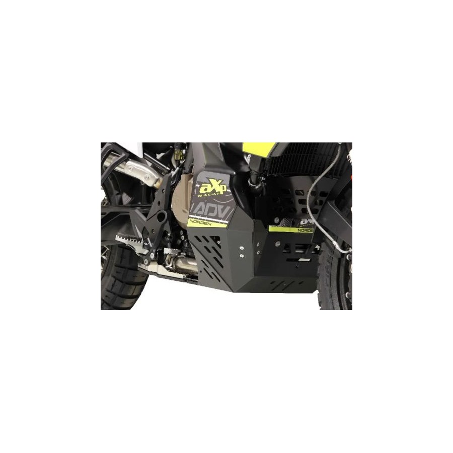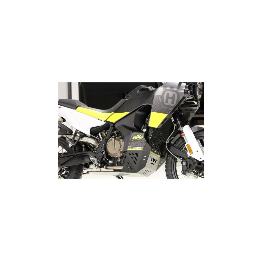 Piastra paramotore Husqvarna Norden 901 - Versione RIGIDA - Peso: 3,8 kg - La piastra paramotore AXP per Husqvarna 901 Norden è stata sviluppata per proteggere il blocco motore e il serbatoio da forti impatti. Realizzata in plastica HDPE (polietilene ad alta densità) spessa 8 mm, questa versione RIGIDA utilizza uno specifico sistema di fissaggio posteriore per la massima resistenza e non ha alcun collegamento diretto con il motore per evitare qualsiasi danno. È stata progettata per un uso fuoristrada impegnativo con attraversamento di tronchi o rocce. Una schiuma spessa 8 mm è fornita da applicare tra la piastra e il serbatoio per ridurre l'attrito. L'adesivo è fornito ma non applicato sulla piastra paramotore. Un parafango è incluso nella confezione e consentirà di far fuoriuscire la massima quantità di detriti dalla piastra paramotore senza compromettere il raffreddamento. Vantaggi rispetto alla lega? Più leggera, più silenziosa, la plastica non crea vibrazioni e non si deforma dopo un impatto, la apprezzerai quando arriverà il momento della manutenzione. NOTA: Questo modello NON è COMPATIBILE con alcun cavalletto centrale. Se disponi di un cavalletto centrale, controlla la nostra seconda opzione, la versione TOURING, progettata per l'uso su strada e fuoristrada leggero, disponibile nella PAGINA ADVENTURE. Prima di ordinare, visita la scheda delle caratteristiche e assicurati che il tuo equipaggiamento (barre paramotore e/o cavalletto centrale) sia compatibile con la nostra piastra paramotore. Tutte le viti e i bulloni sono inclusi nella confezione.