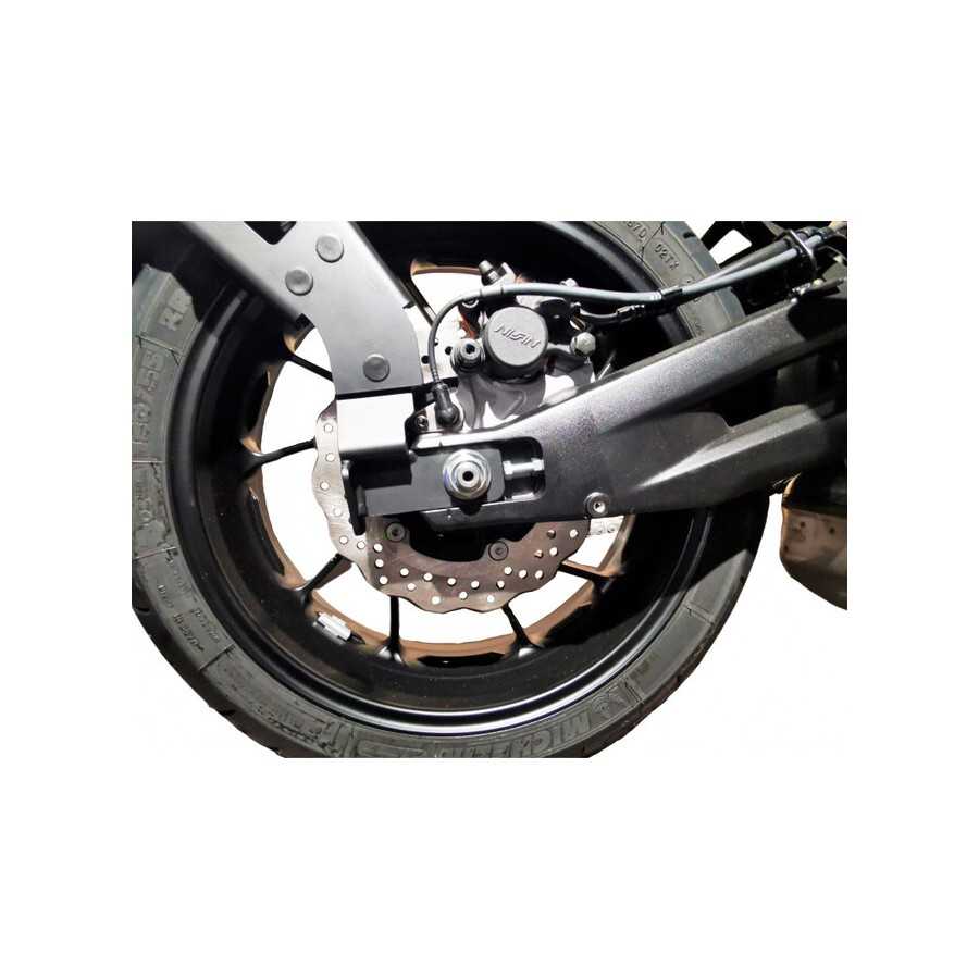 Il portatarga è fissato sotto il parafango per mantenere linee sobrie e stile café racer.