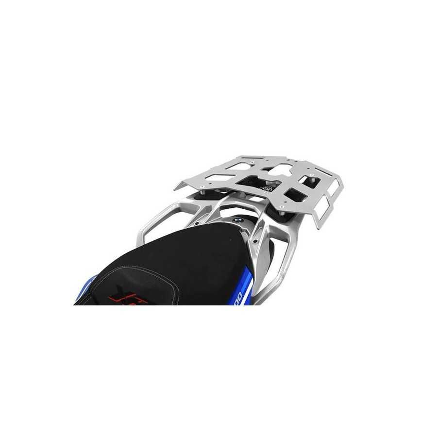 Questo portapacchi verniciato a polvere argento è realizzato in alluminio di 4 mm di spessore e tagliato al laser. Può essere montato sulla piastra di supporto originale per aumentare la superficie del rack. Gli slot per le cinghie di fissaggio fissano il bagaglio direttamente sul portapacchi.