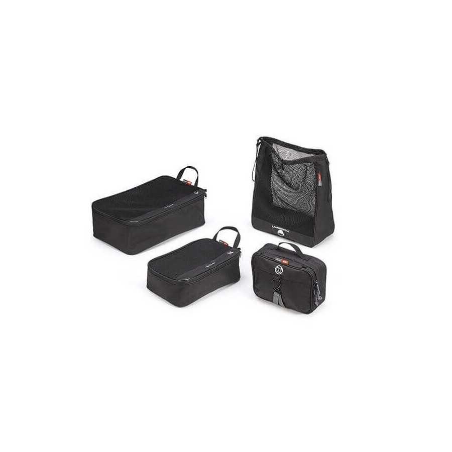 - L: 2 contenitori morbidi con rete per indumenti in taglia Medium e Large. Laundry bag: sacca morbida con rete per indumenti da lavanderia. Toiletry bag: contenitore per il necessario da toeletta, dotato di porta flaconi in rete estraibile, da appendere all’occorrenza in doccia. Dotazioni: Pack cube M